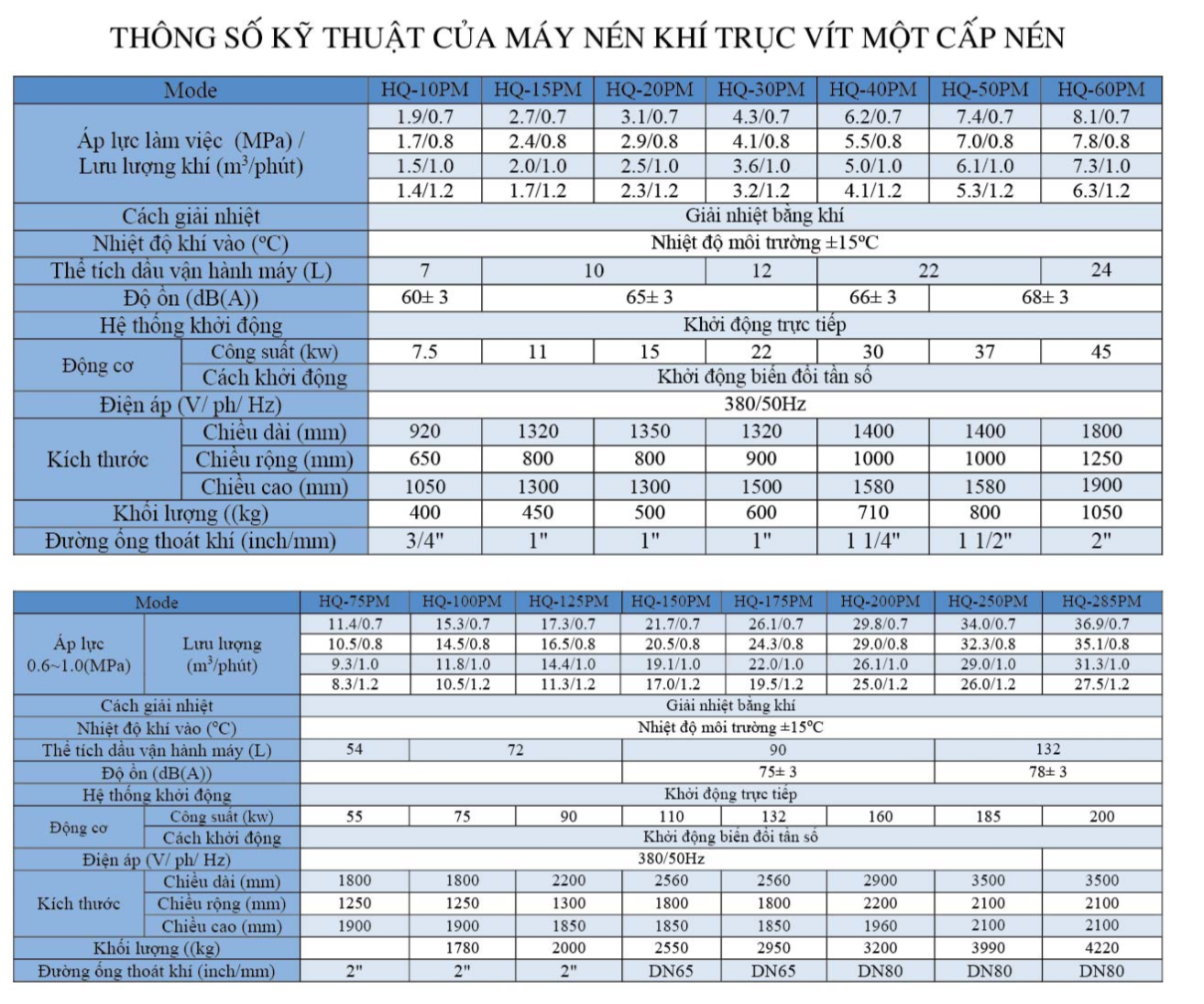 Thiết bị điện: Schneider - Đức Kết nối chạy luân phiên máy chính máy phụ 6 máy, Lưu lượng lớn, Tiết kiệm 70% điện năng lúc máy chạy không tải , Tiết kiệm 100% khi máy đủ áp tự động dừng hẳn, Tự động khởi động khi tuột áp, Độ ồn thấp, Nhiệt độ khí ra thấp, Dể vận hành, Phụ tùng dể thay thế, nhiều chủng loại đa dạng phong phú giá thành rẻ
