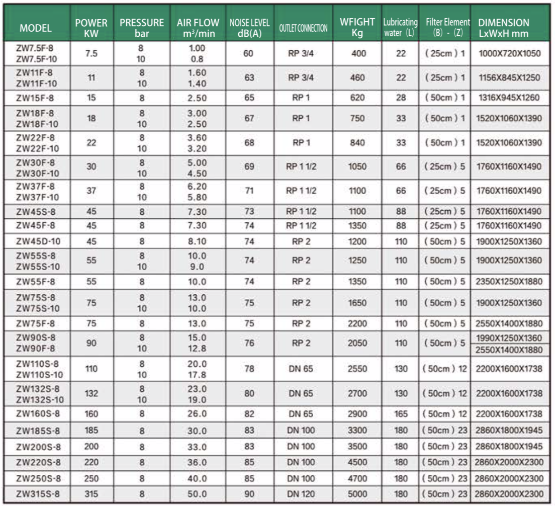 Thiết bị điện: Schneider - Đức Kết nối chạy luân phiên máy chính máy phụ 6 máy, Lưu lượng lớn, Tiết kiệm 70% điện năng lúc máy chạy không tải , Tiết kiệm 100% khi máy đủ áp tự động dừng hẳn, Tự động khởi động khi tuột áp, Độ ồn thấp, Nhiệt độ khí ra thấp, Dể vận hành, Phụ tùng dể thay thế, nhiều chủng loại đa dạng phong phú giá thành rẻ